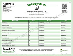 Patents and Copyrights: ISO9001, ISO 22000, Halal, Kosher, EU & NOP Organic Certificate and 39 patents, etc