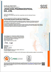 We are the manufacturer and exporter of choline chloride, choline bitartrate, choline dihydrogen citrate, DMAE bitartrate, betaine anhydrous, betaine monohydrate, and betaine hydrochloride, which has been issued with FSSC22000, GMP and Kosher Certificate as well. And the products have been exported to US, Europe, Japan, Taiwan and other South Asian countries and areas, and we have been doing business with DSM, Sigma, and other famous companies for years.